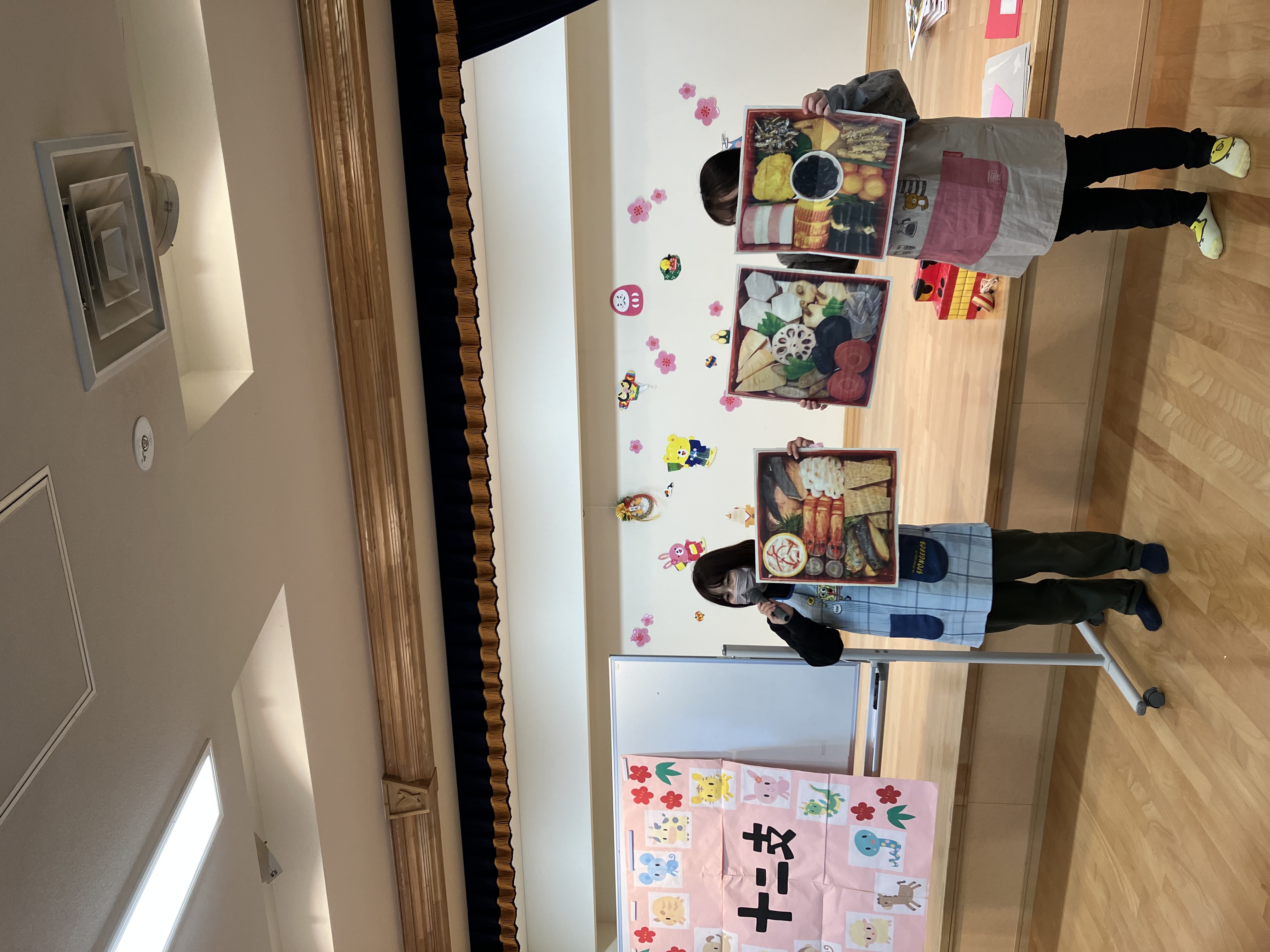 子どもたちは晴れやかな表情で集まり、日本の伝統行事に親しみながら、おせち料理や七草粥にまつわるお話を聞きました。