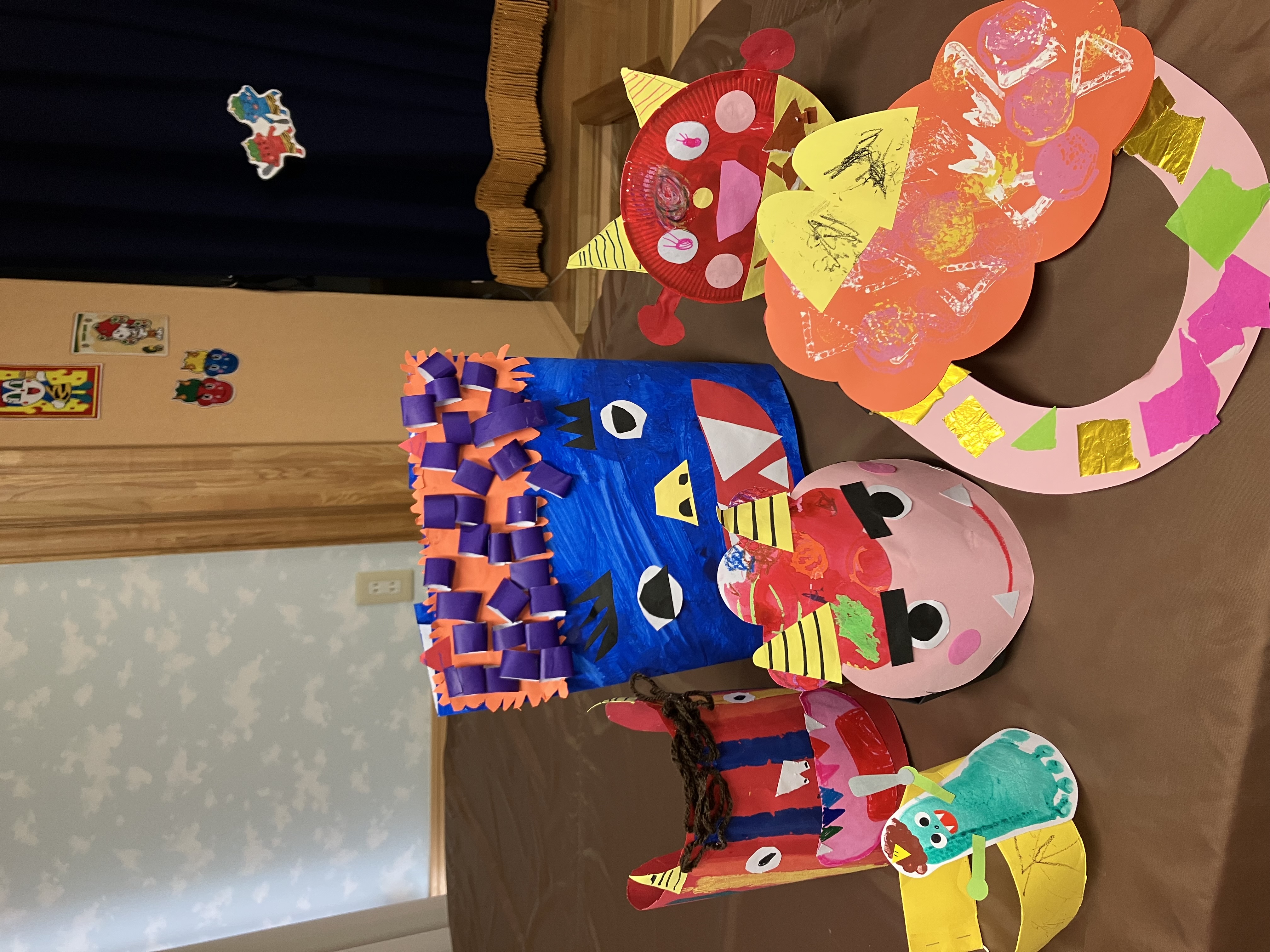 そのあとは各クラスで製作した個性あふれるお面を紹介!!