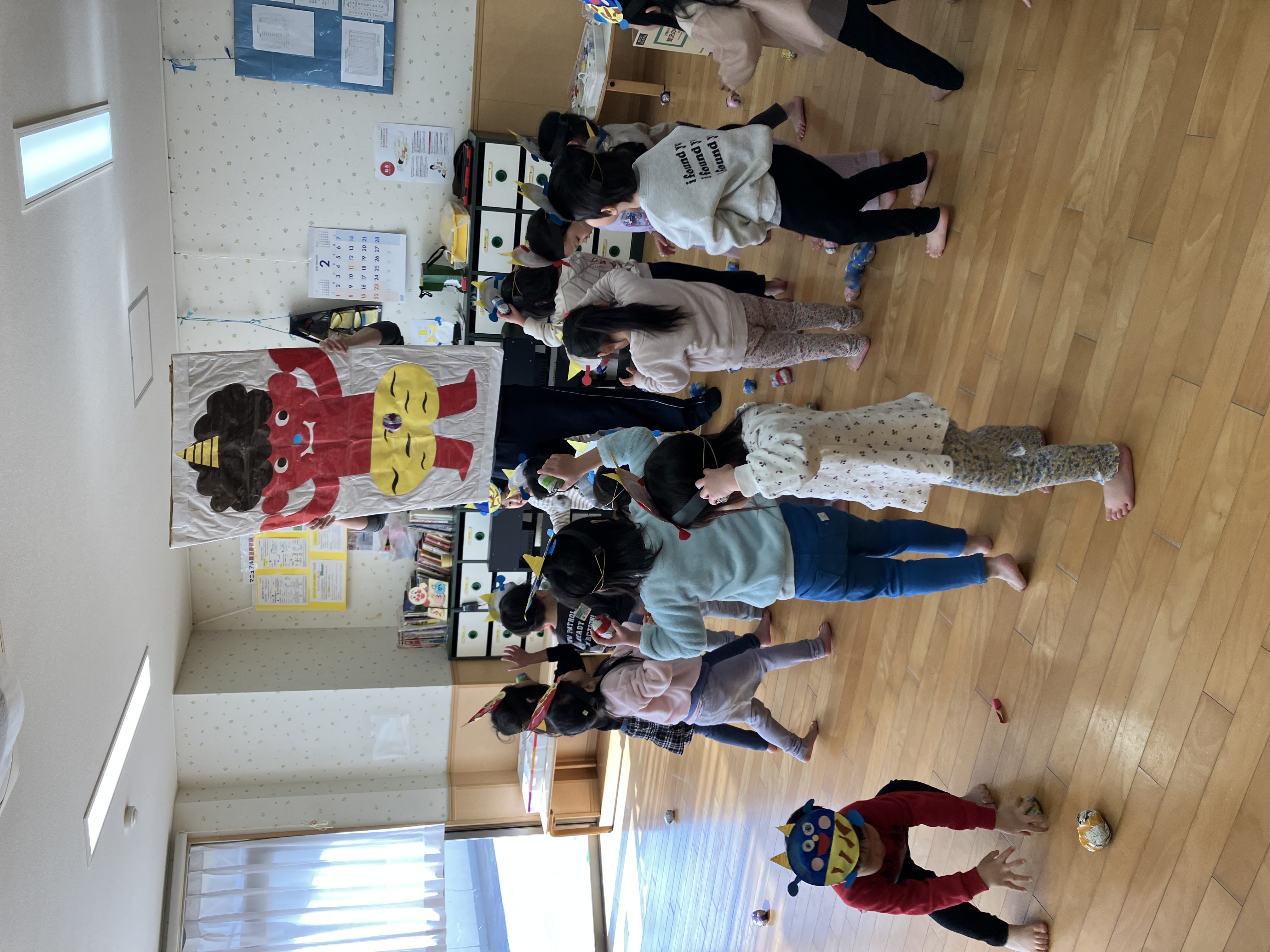 「おにはそと!ふくはうち!」と元気いっぱいに豆まきを行いました。