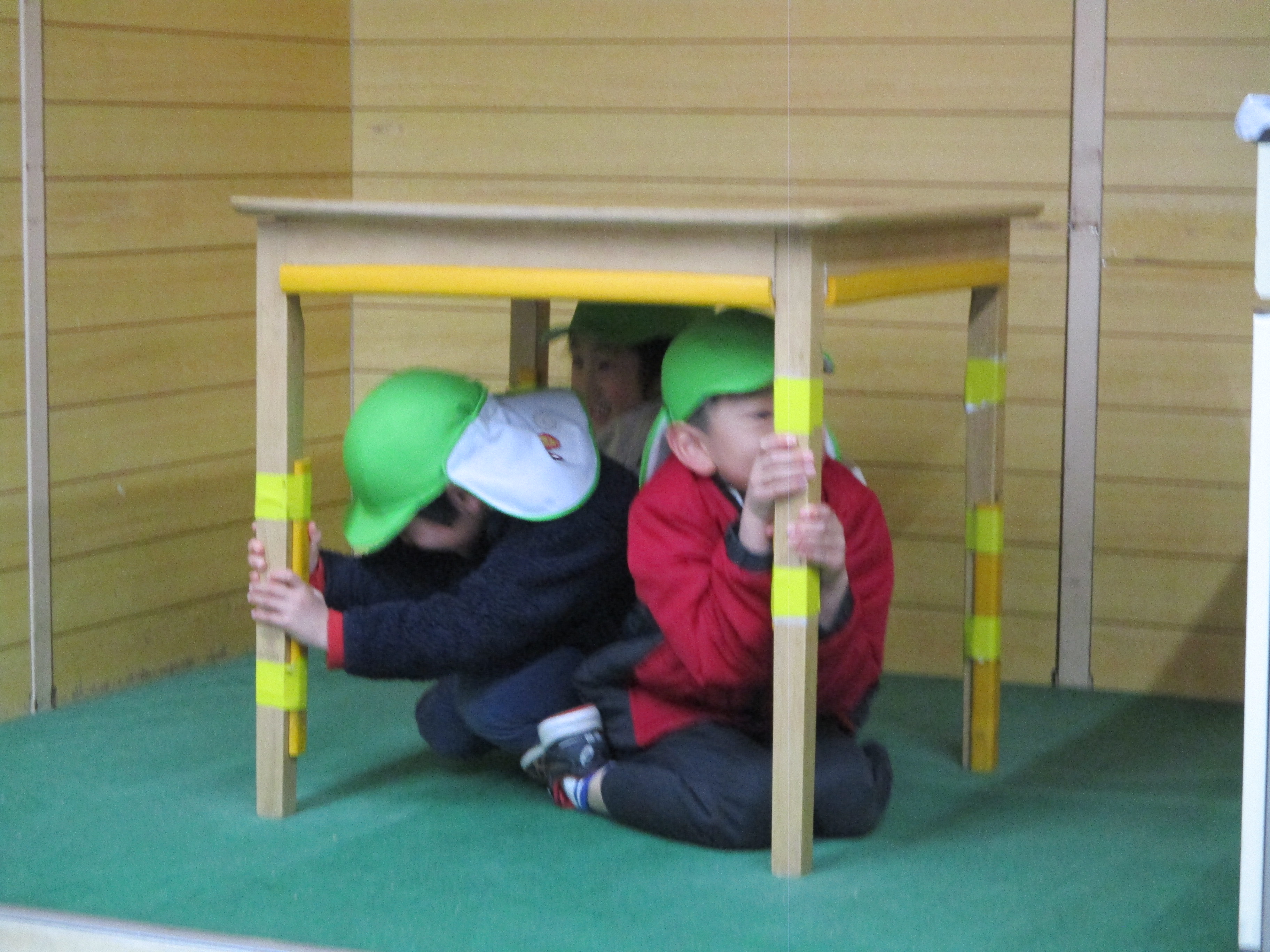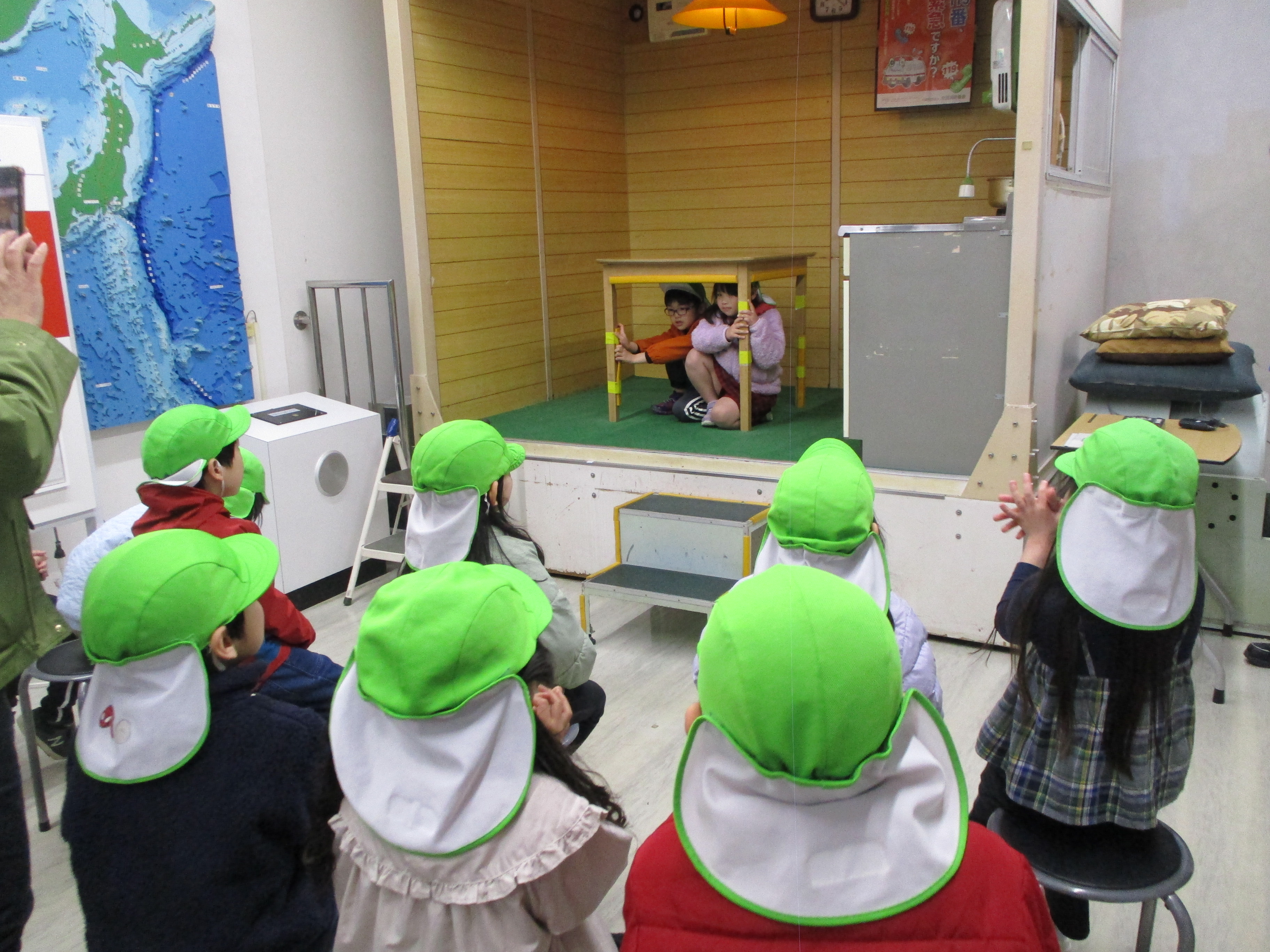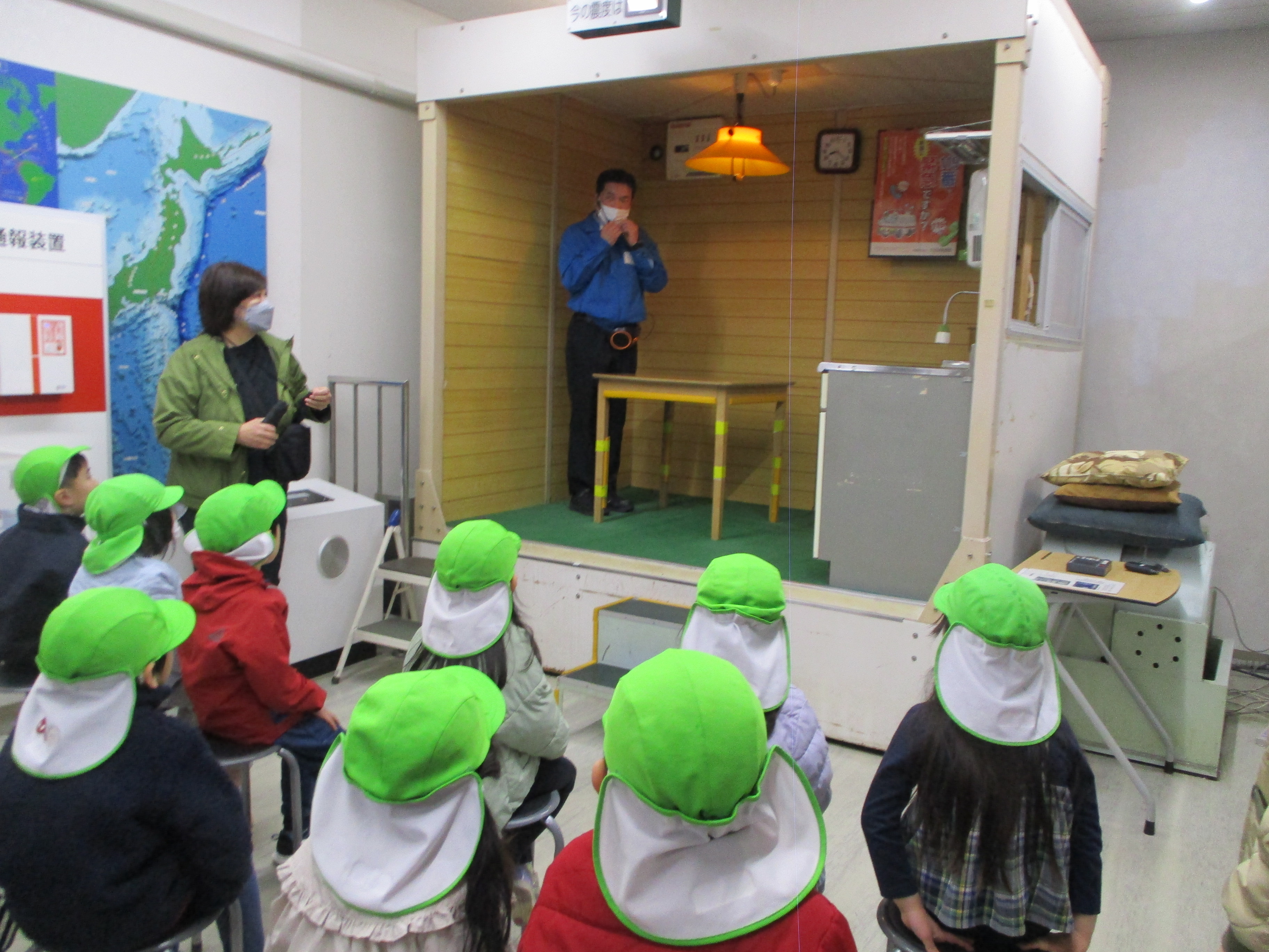 地震や火災が起きた時、どの様に避難したら良いか実際に体験し、防災について