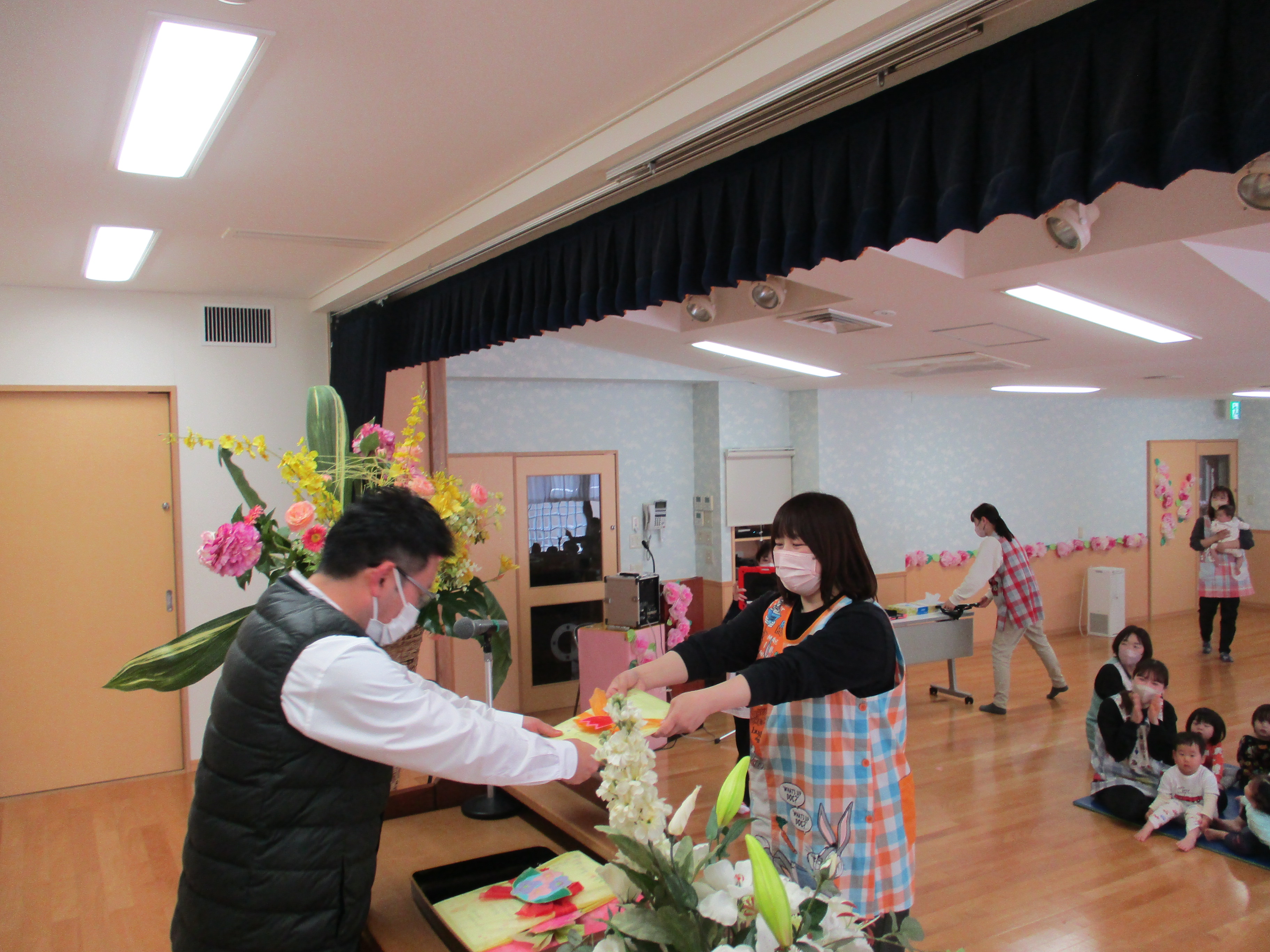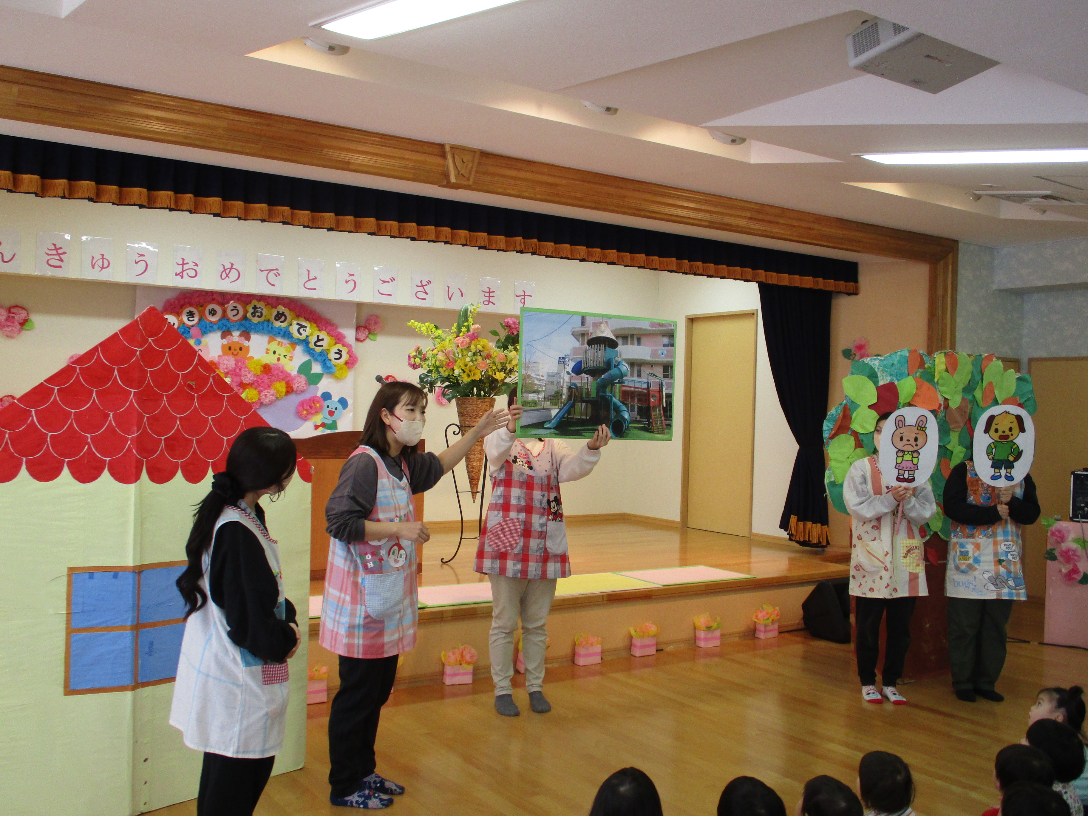 続いて保育士によるペープサート劇「保育園ってたのしいな」を鑑賞し、これからの