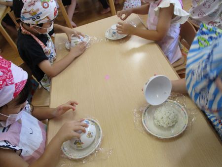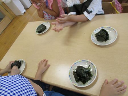 今日は9月の食育活動「大きなおにぎりを作って食べよう!」を行いました。