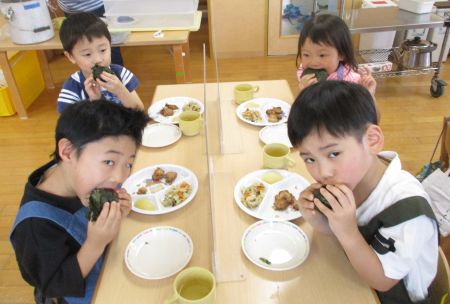 ~~~いろんな栄養がつまった「おにぎり」おいしく食べて元気もりもり!おおきくなろうね~~~