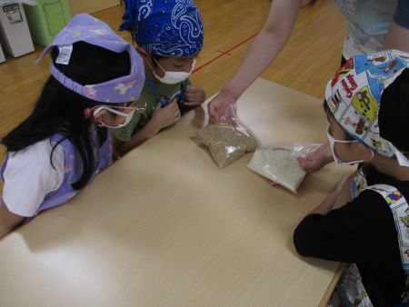 玄米と精米されたお米を見比べて、お米の栄養についても聞きました。