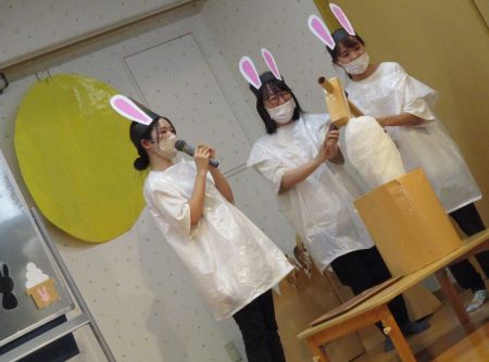 楽しい手遊び等に笑顔いっぱいの中、劇が始まりました。
