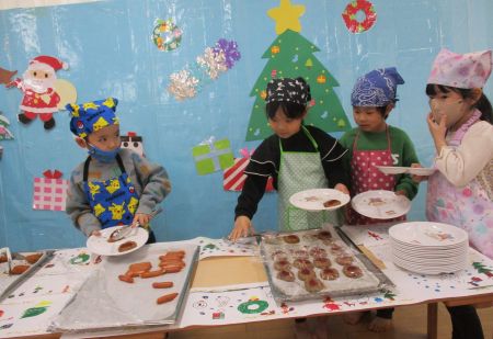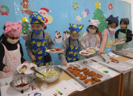 今日は、12月の食育活動「クリスマスバイキング&オリジナルサンドイッチ作り」を行いました。