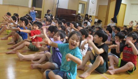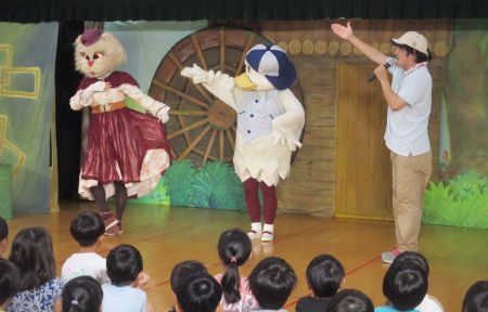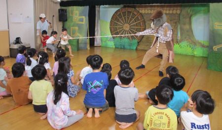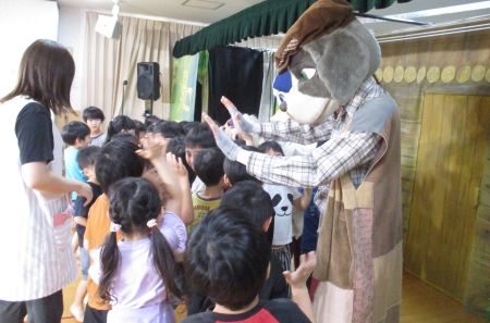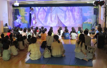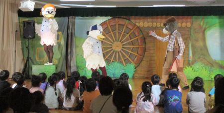 楽しい手遊び等に笑顔いっぱいの中、劇が始まりました。