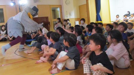 ~ 今日は、劇団バク チームバンブーによる「みにくいあひるの子」の人形劇公演を子育て支援ご参加の皆様と保育園の子どもたちが観劇しました。