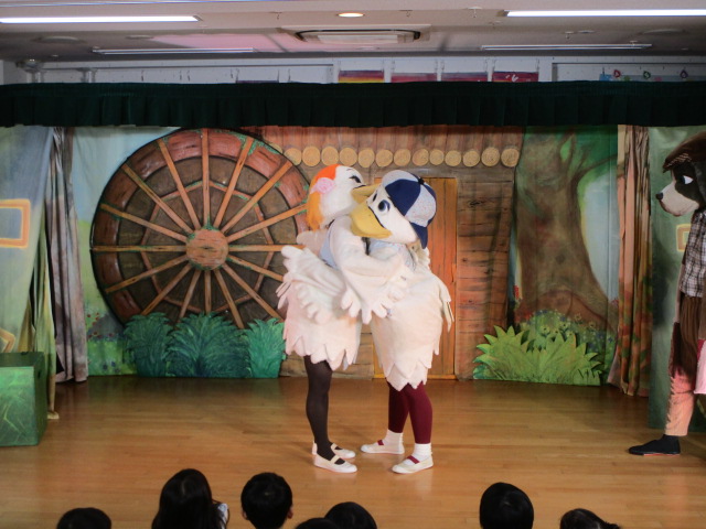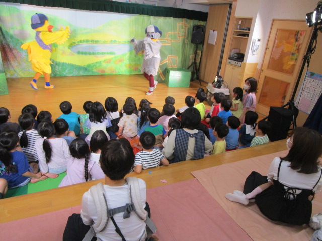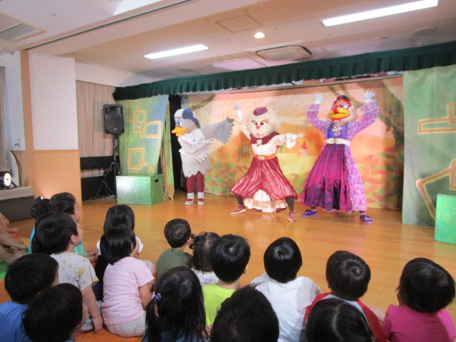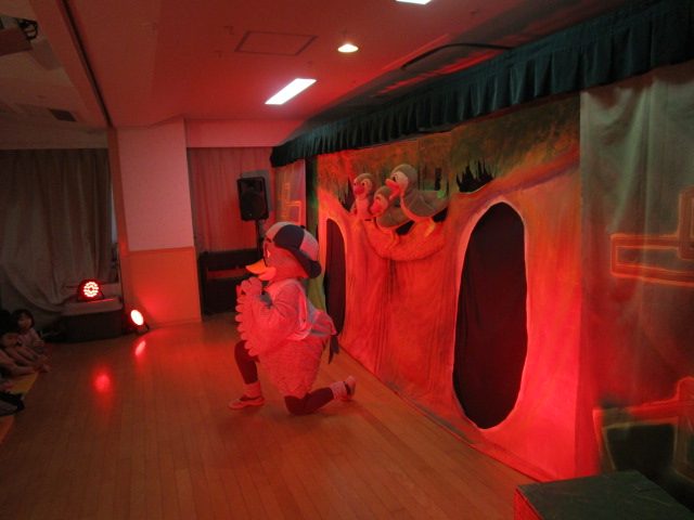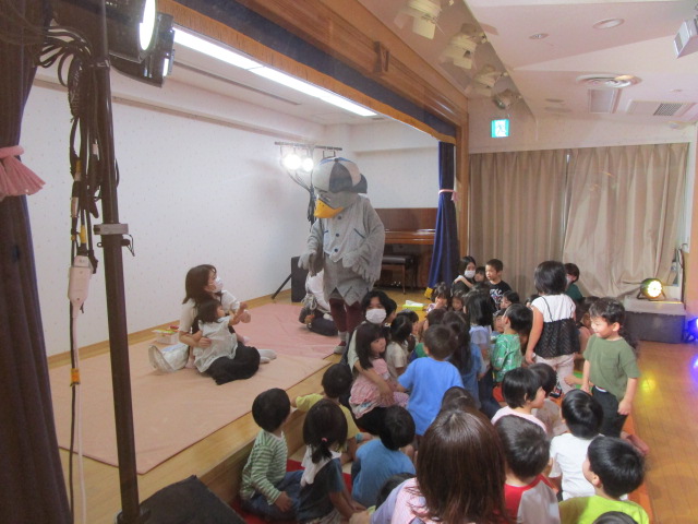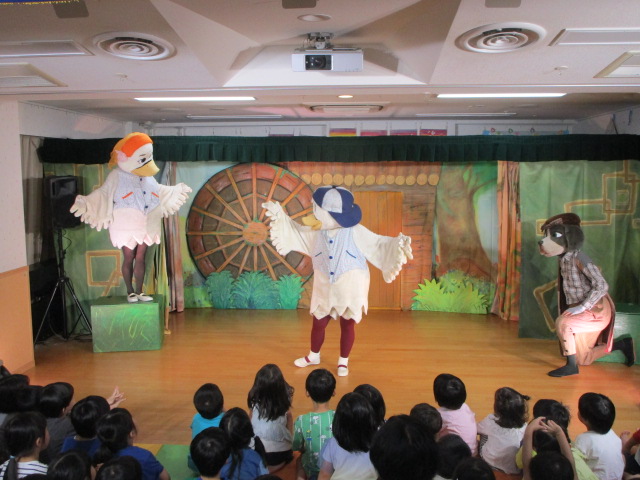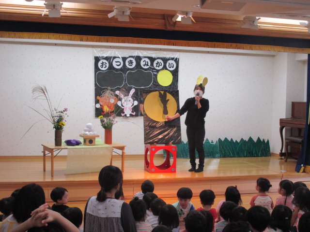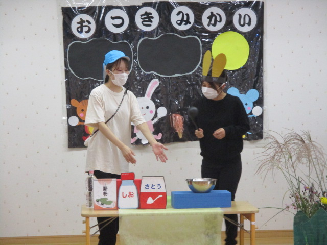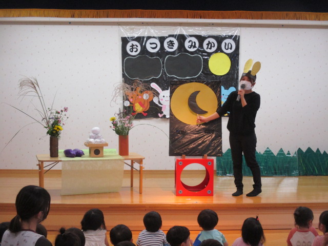 初めに保育士による劇があり、その中でお月見の由来やお供え物について説明がありました。