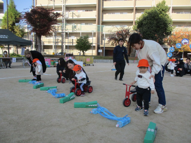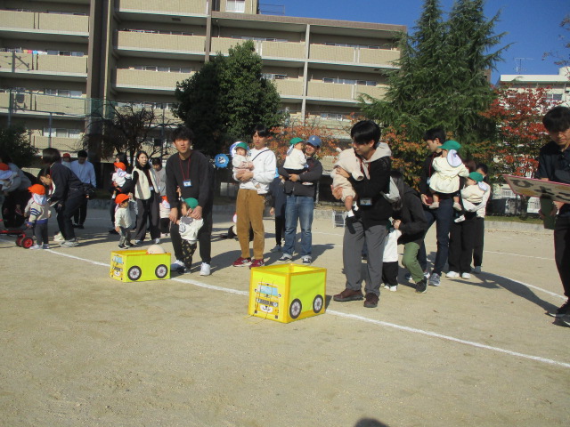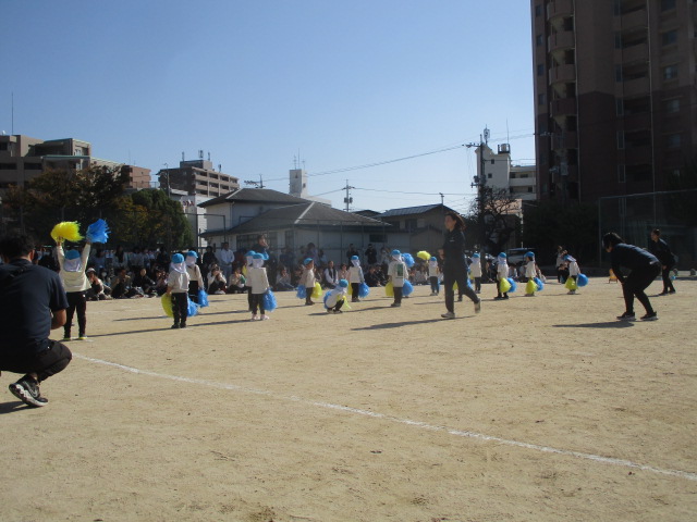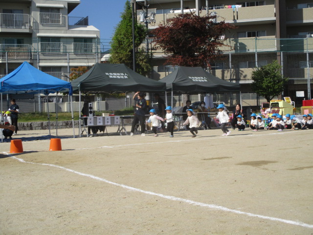 競技は親子競技や親子遊戯、かけっこ、リレー、フラッグ等があり、子ども達は様子は、笑顔あり緊張もあり、又、真剣さもあり、様々な表情がありました。大勢の方の前で緊張もあったかとは思いますが、一人ひとりの頑張りが輝き、お家の方と一緒に楽しんだり、拍子や大きな声援が力になっているような感じでもありました(^^)/