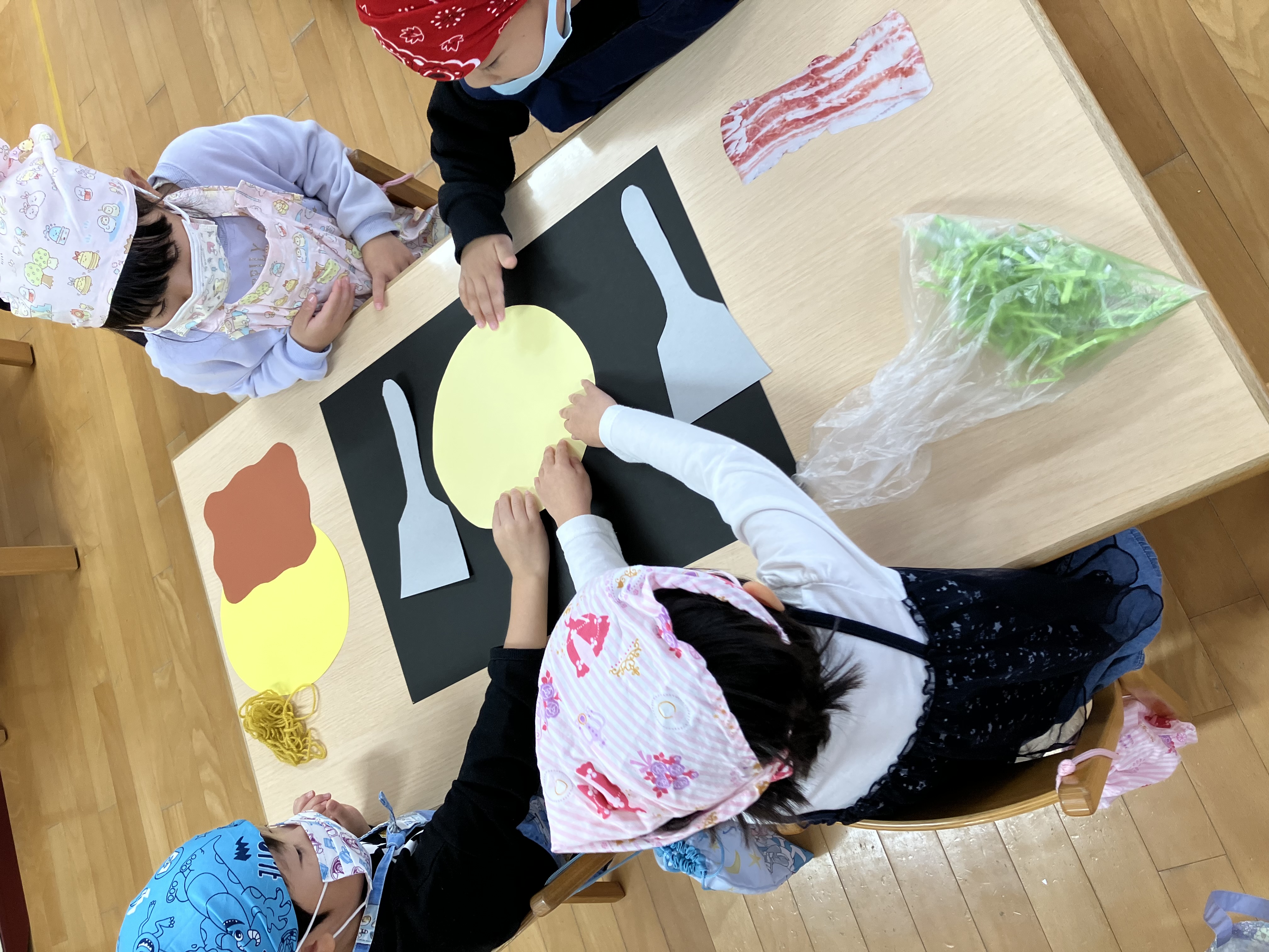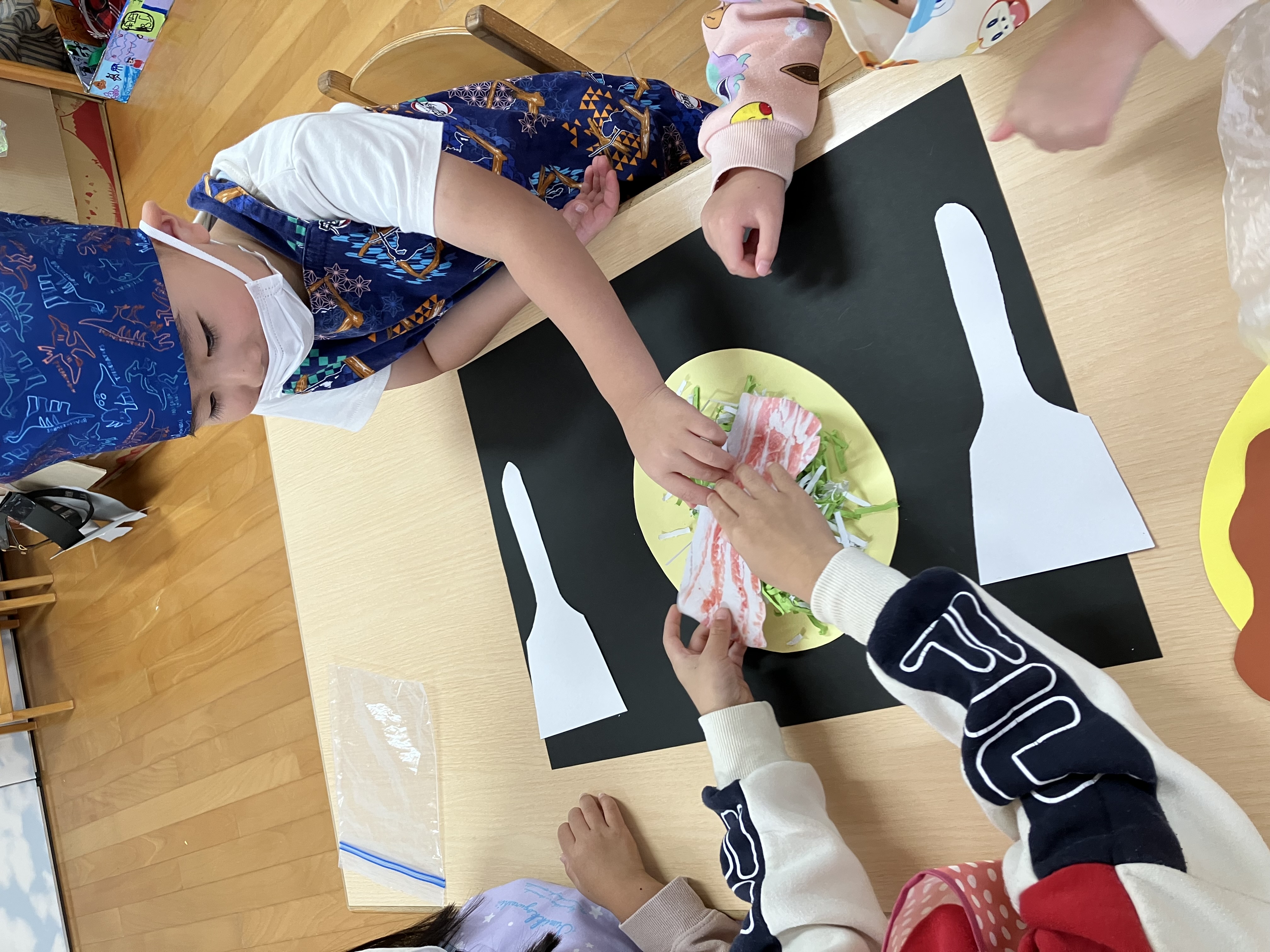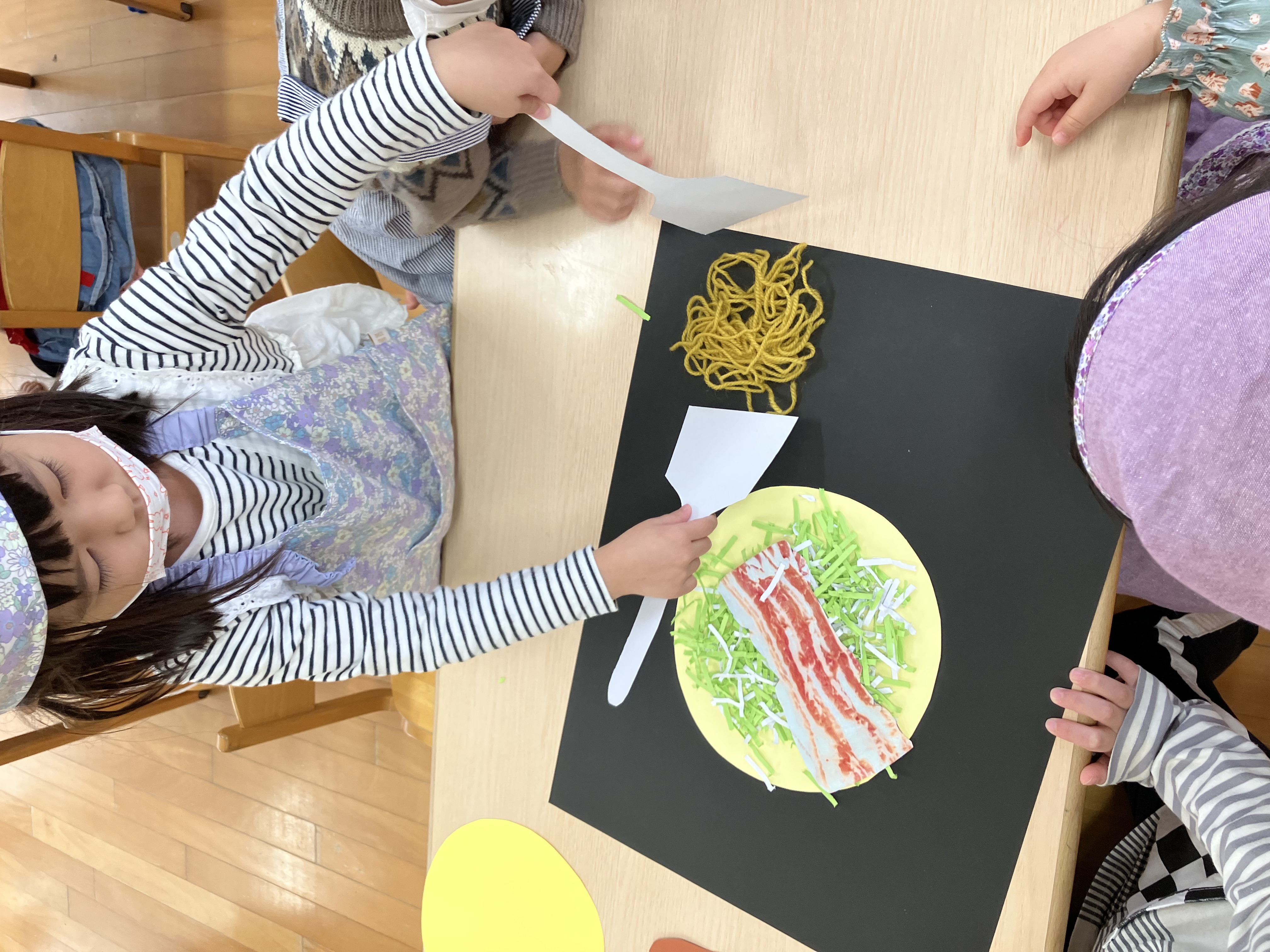 画用紙などで作った食材を用いて作ってみましたよ♪