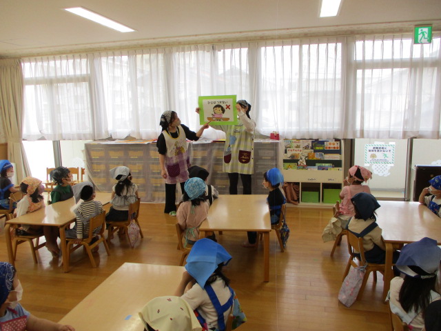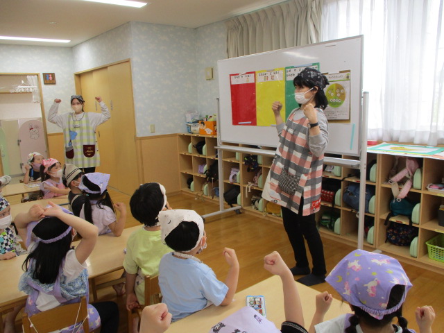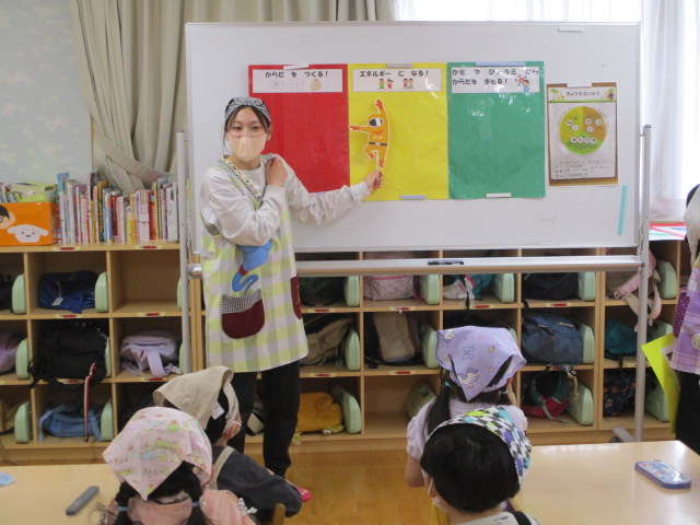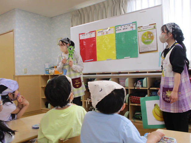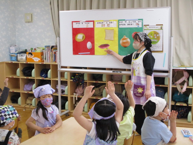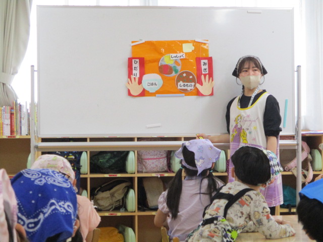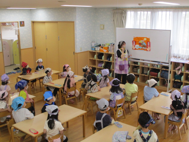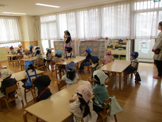 本日、年中・年長クラスは食育活動に参加し、「食事のマナー」について学びました。