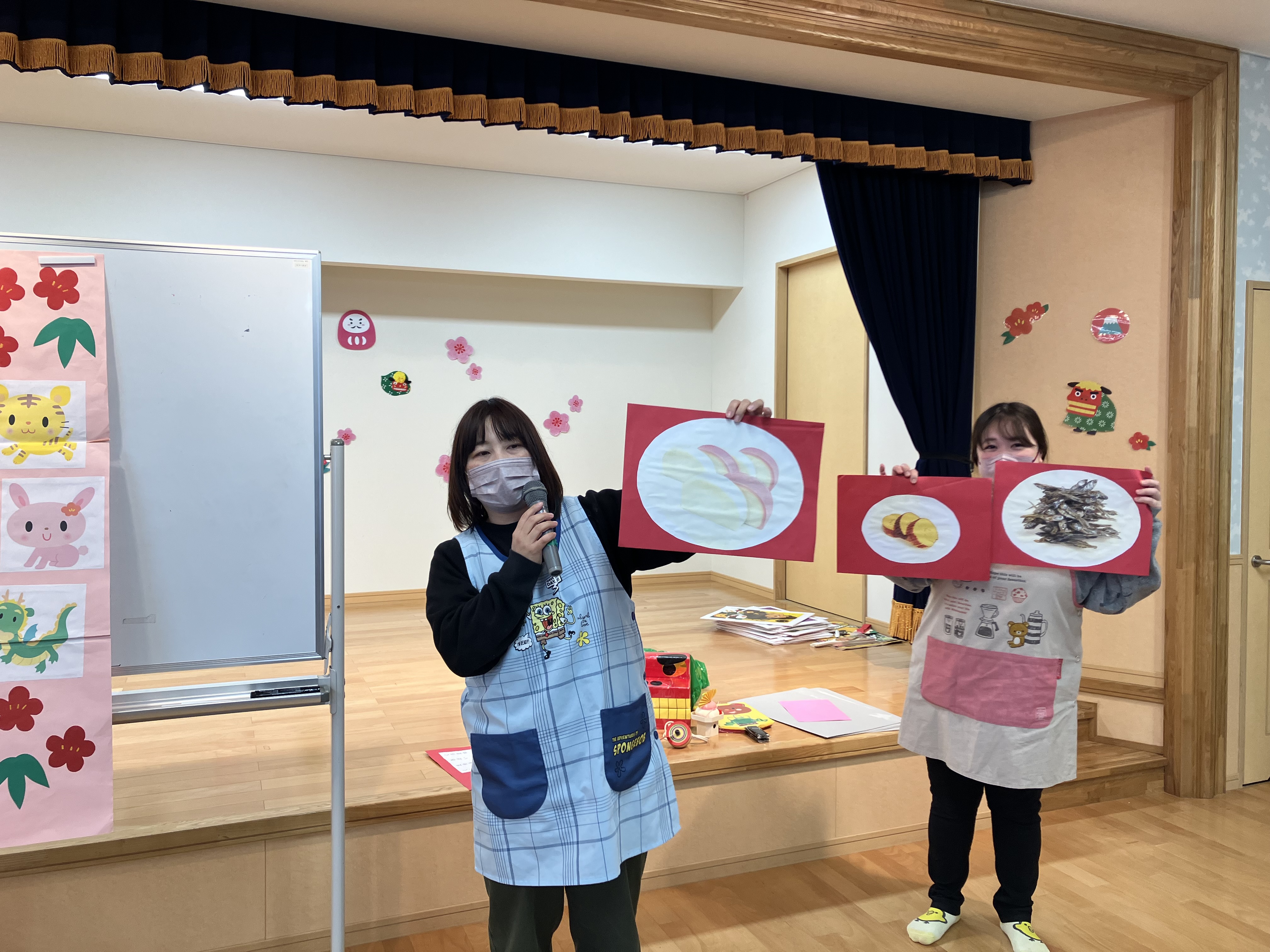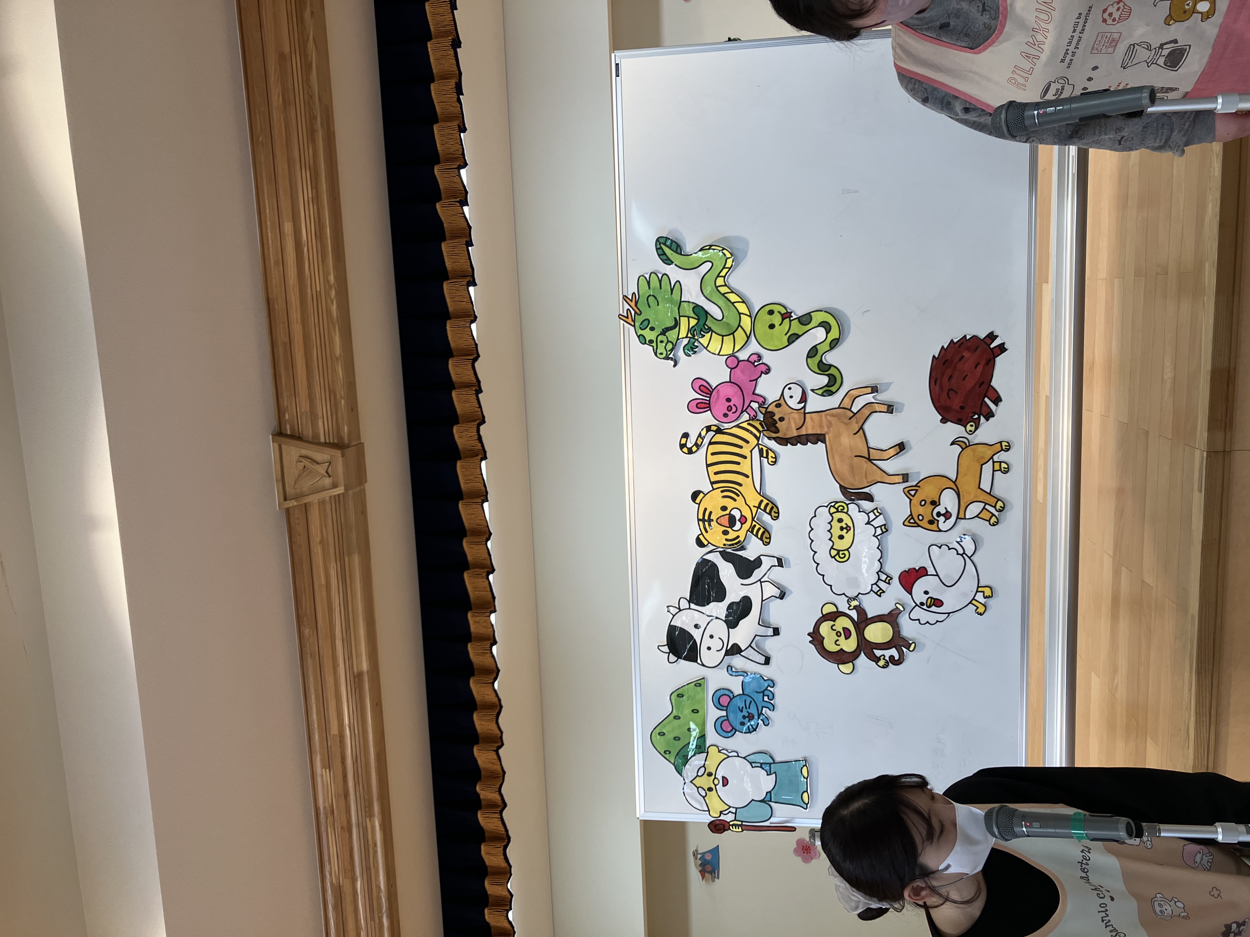 また、十二支の由来についてのお話では、自分の干支に興味を持ったり、友だちの干支と比べたりしながら、楽しく聞く姿も見られました。