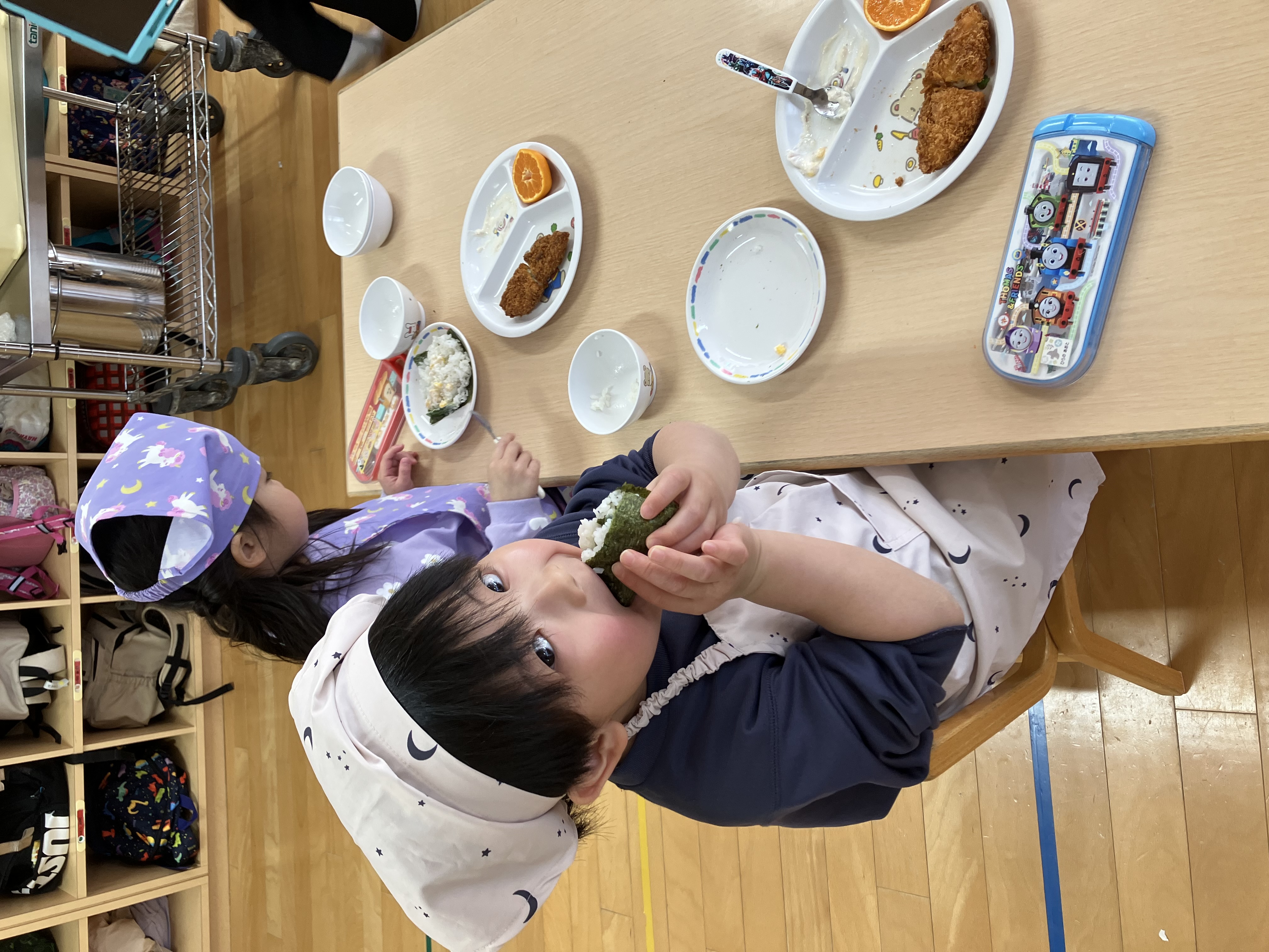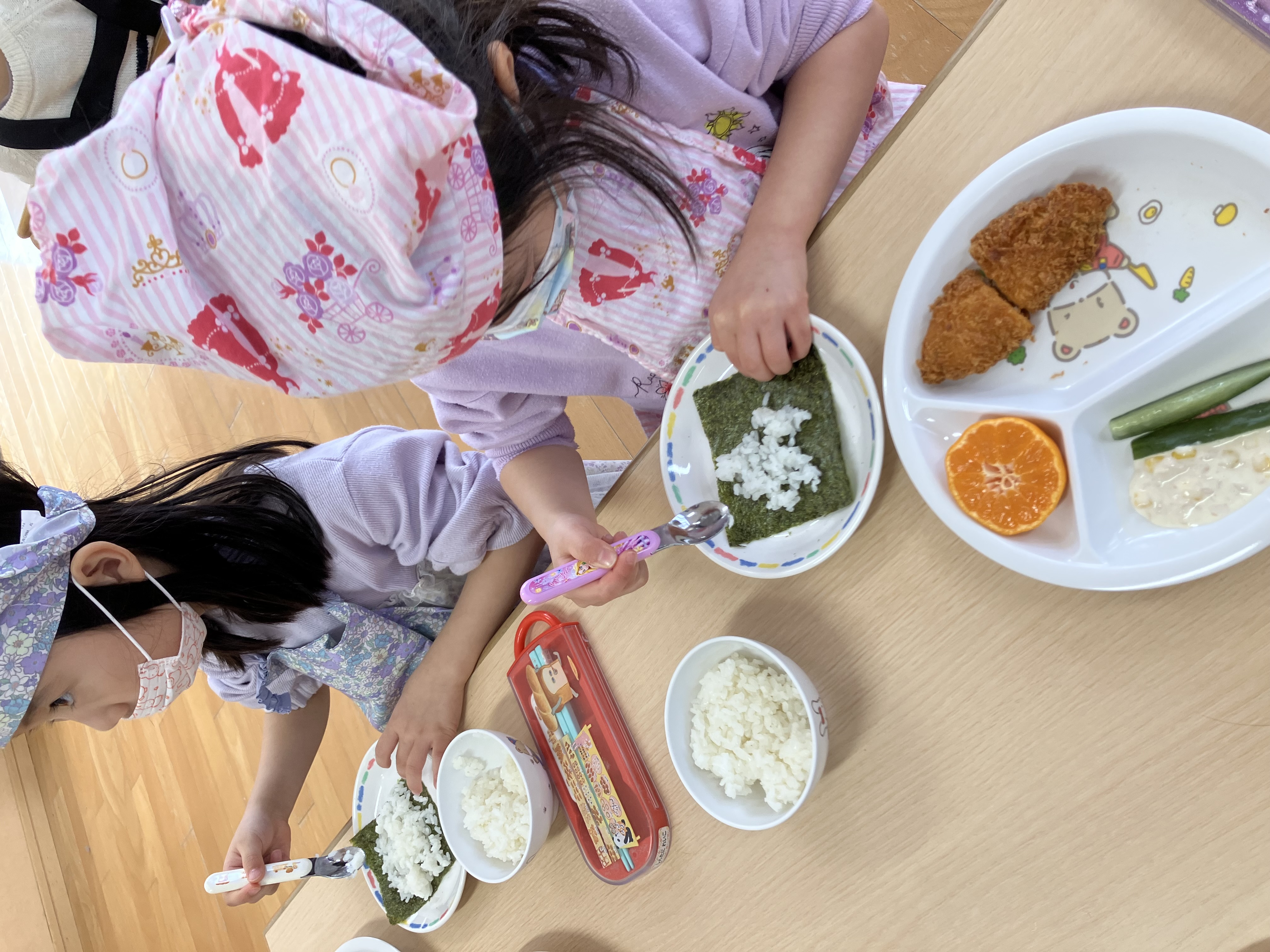 また、本日は年中・年長クラスでは、食育活動で「自分でまきまき!恵方巻作り」に挑戦!!