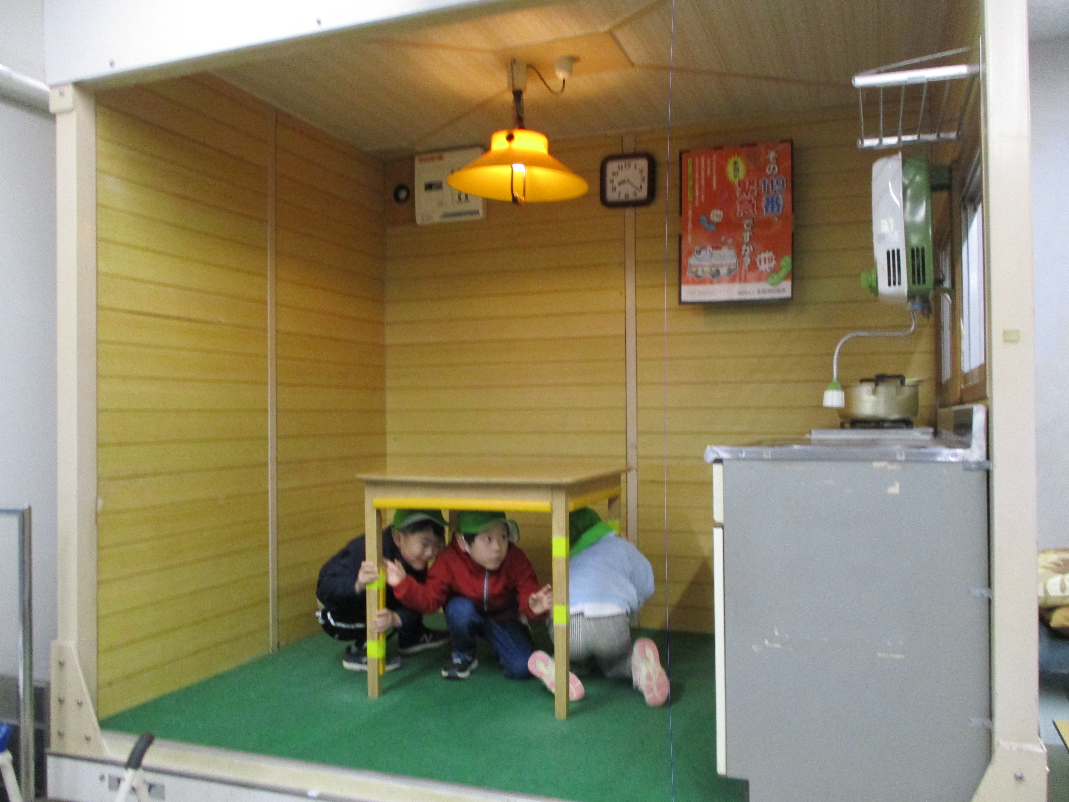 地震や火災が起きた時、どの様に避難したら良いか実際に体験し、防災について