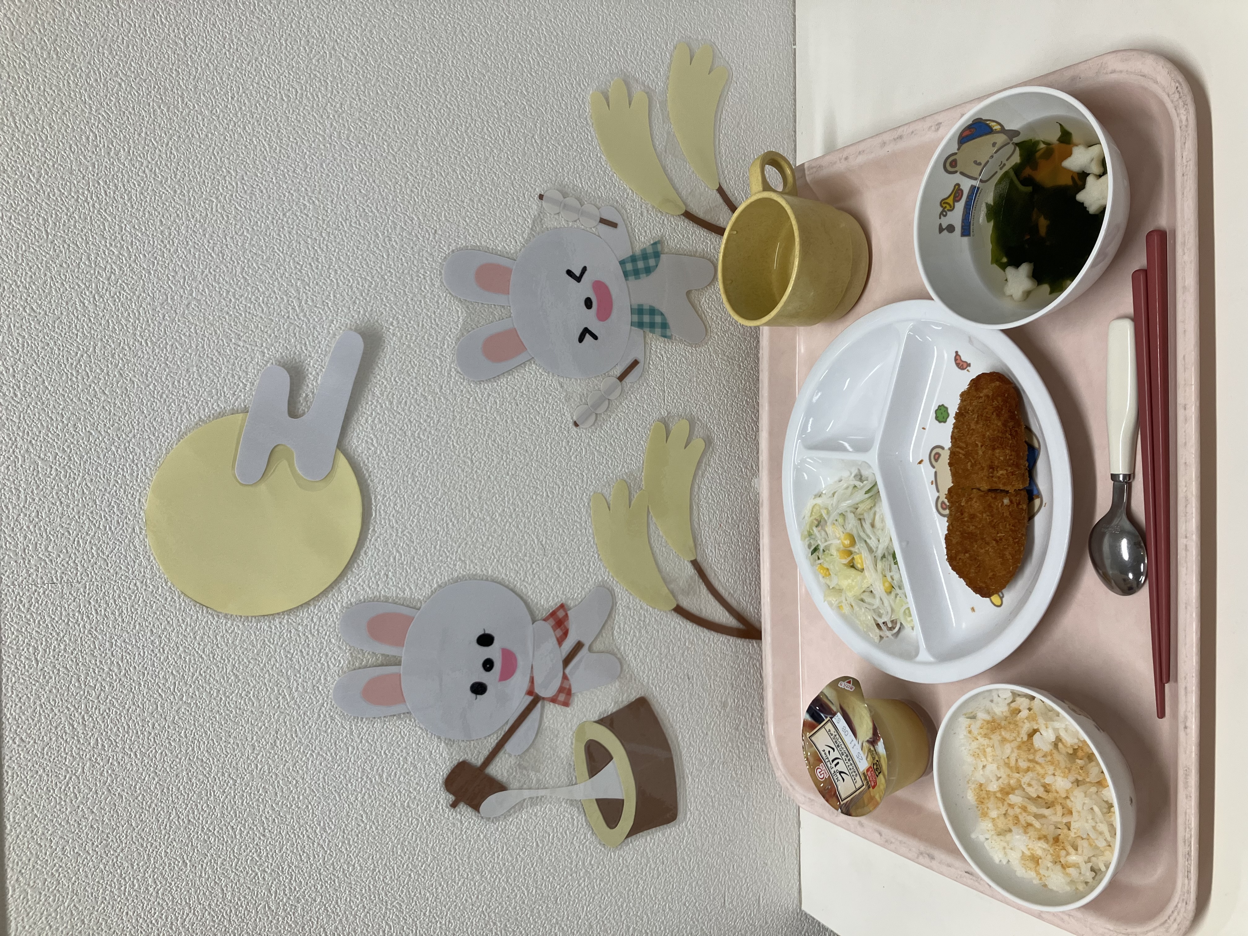 そして、給食はお楽しみのお月見メニュー‼ 秋の味覚を存分に味わいました。