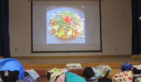 「牡蠣」「くわい」「レモン」「お好み焼き」等、どんなところで育ち収穫されるのか、どんな料理になるのかなど紹介されると「あっ知ってる‼くわいっていうの見たことある‼」「レモン酸っぱいよね!」等、子どもたちのつぶやきが聞こえてきました☆
