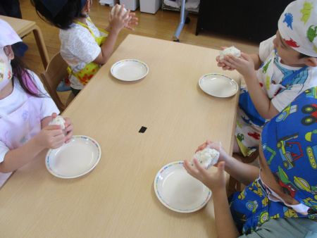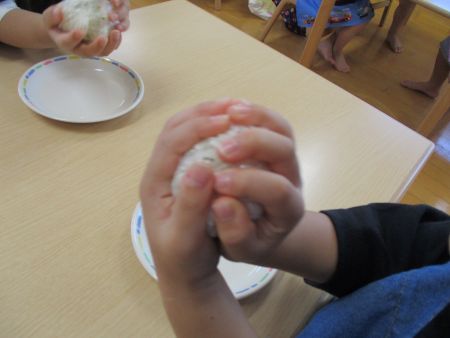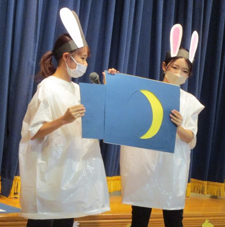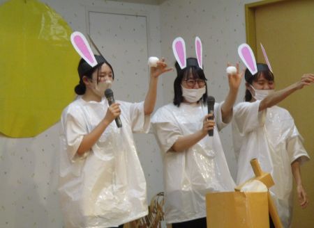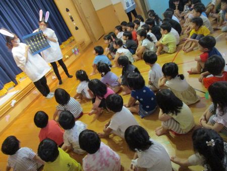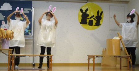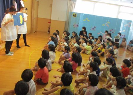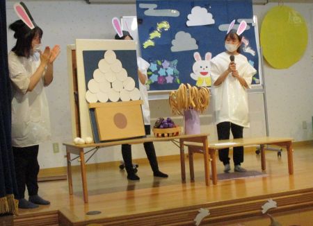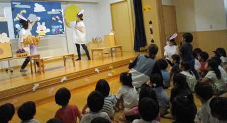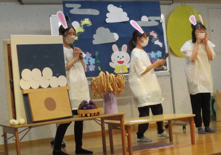 楽しい手遊び等に笑顔いっぱいの中、劇が始まりました。