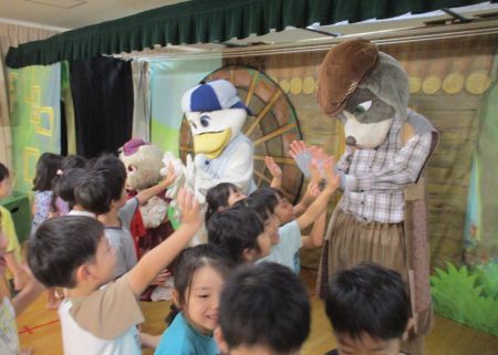 楽しい手遊び等に笑顔いっぱいの中、劇が始まりました。