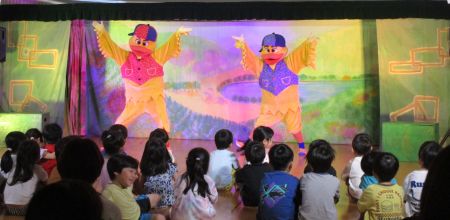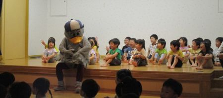 ~ 今日は、劇団バク チームバンブーによる「みにくいあひるの子」の人形劇公演を子育て支援ご参加の皆様と保育園の子どもたちが観劇しました。