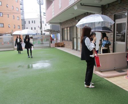 あいにくの天候となりましたが、親子でドキドキ、ワクワク、うれしい登園です。