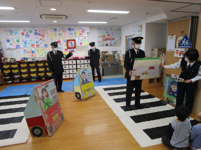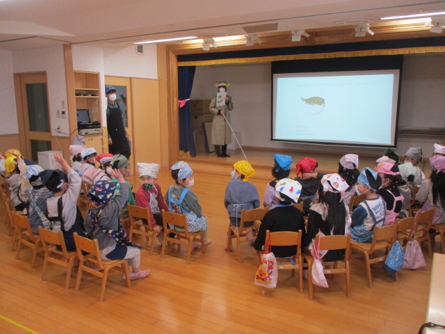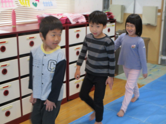 最初は遊戯室で朝の歌・季節の歌を歌ったり、大型絵本「ぴょーん」を観てから、屋上へ出発です(^^)/