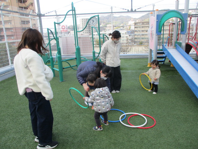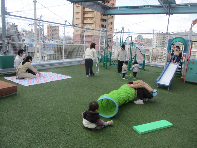 3月13日は子育て支援「屋上で遊ぼう♪開放的な屋上で体を動かして遊びましょう♪」を行いました。