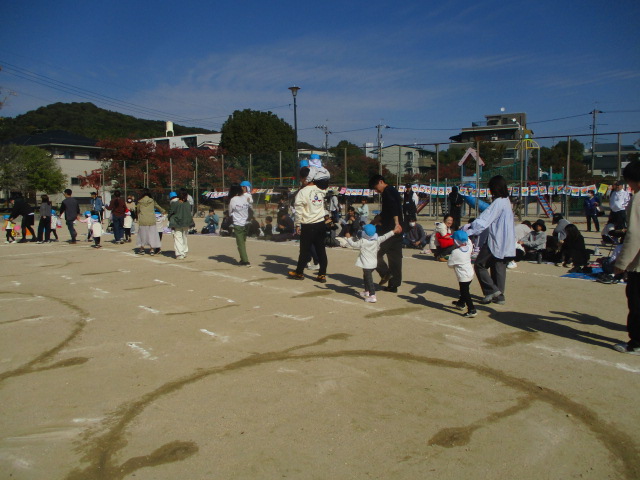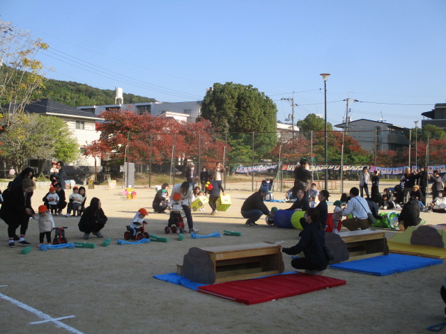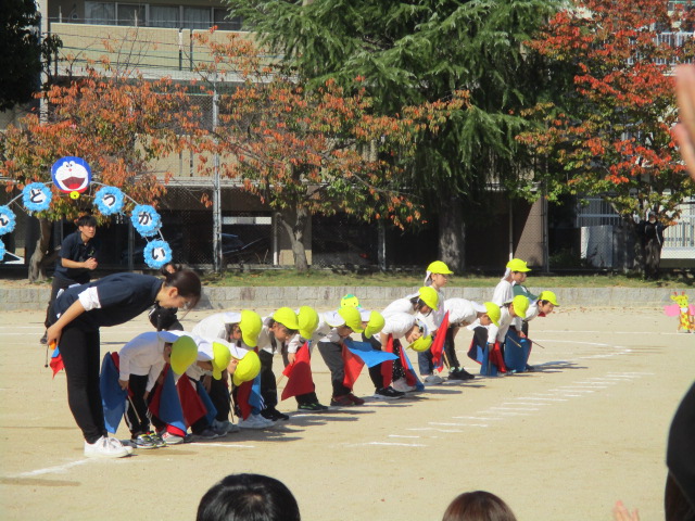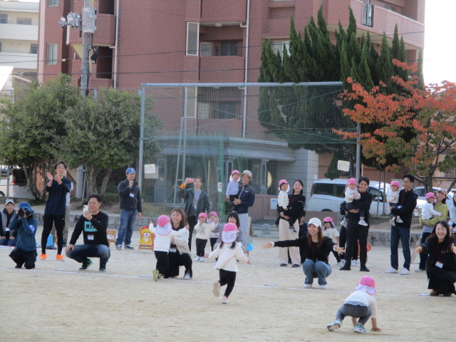 競技は親子競技や親子遊戯、かけっこ、リレー、フラッグ等があり、子ども達は様子は、笑顔あり緊張もあり、又、真剣さもあり、様々な表情がありました。大勢の方の前で緊張もあったかとは思いますが、一人ひとりの頑張りが輝き、お家の方と一緒に楽しんだり、拍子や大きな声援が力になっているような感じでもありました(^^)/